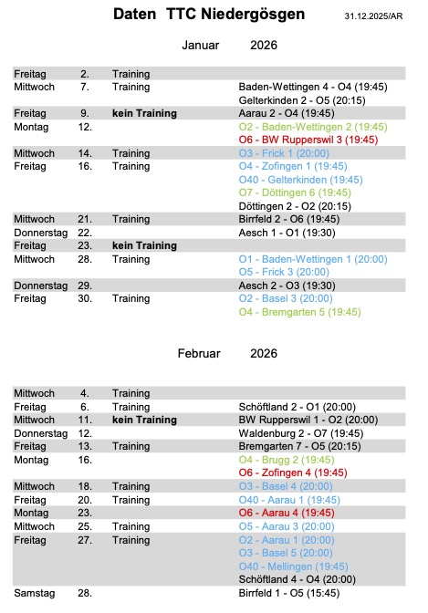 Tischtennisclub Niedergösgen